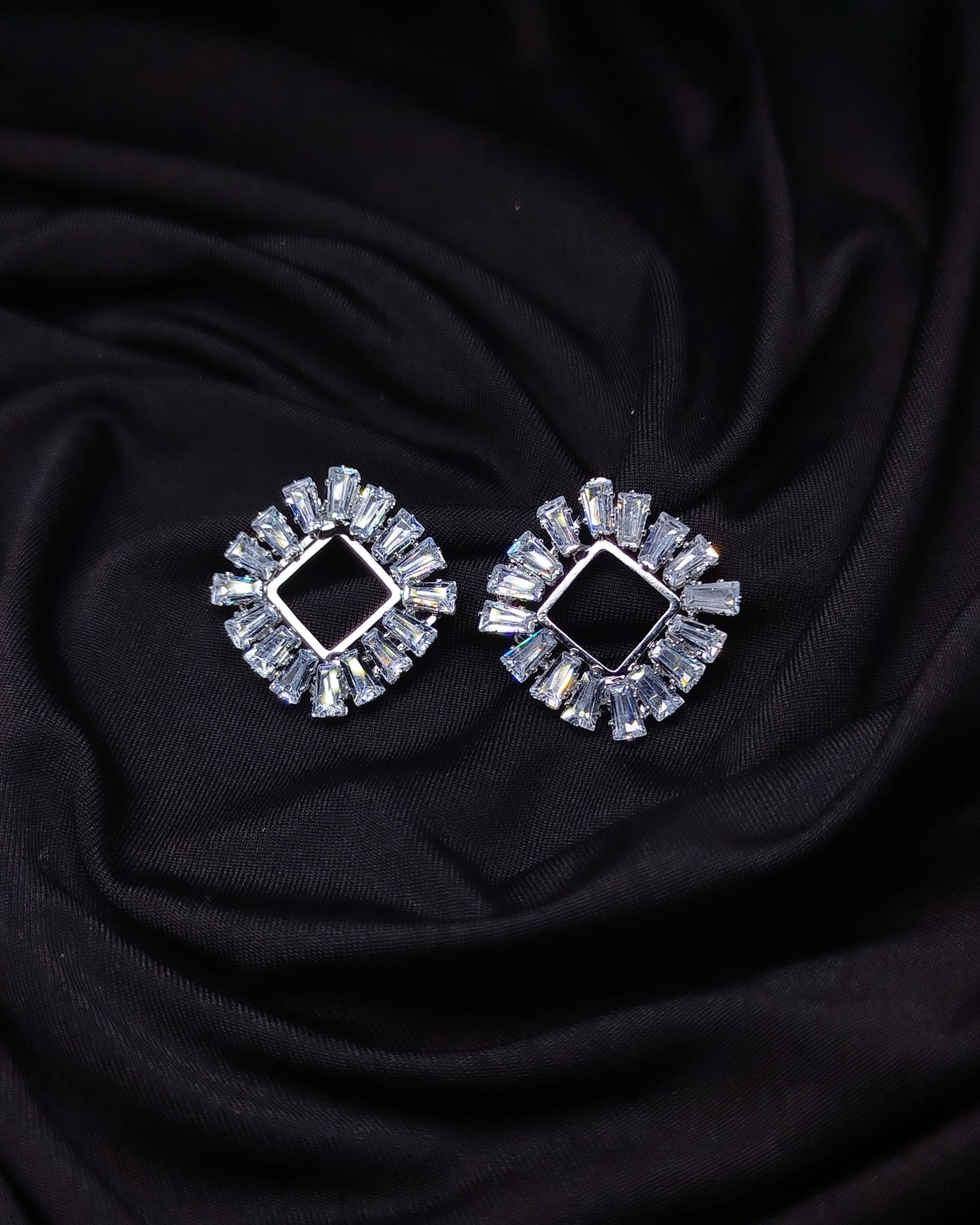 "Shimmer like a square superstar in our Square Zircon Earrings. Elevate any outfit with these stunning studs, perfect for a touch of modern elegance."